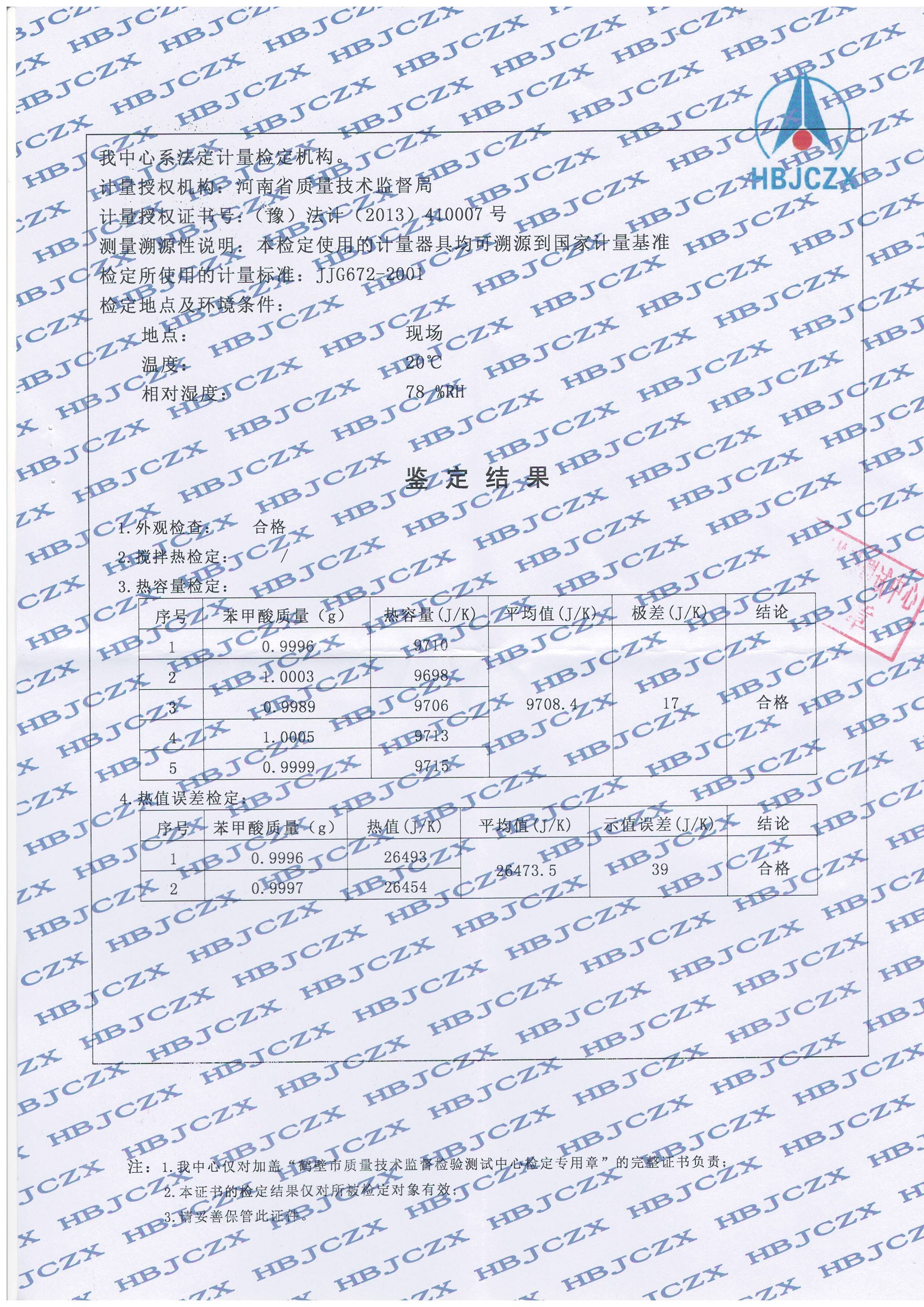鶴壁市華諾電子科技有限公司是一家專業研制、生產煤質采制樣分析儀器儀表的高新技術企業。在社會經濟高度發達的今天,我公司長期堅持“質量產生效益,質量贏得市場”的理念矢志不移。如今公司在質量管理方面已經形成了一套完整的體系,上周經過公司相關部門討論,領導決定為出廠的每臺量熱儀辦理“身份證”,即生產的任何型號的量熱儀都要通過鶴壁市質量技術檢測中心檢定并且合格才能出廠運送給客戶使用,鶴壁市質量技術檢測中心會為接受檢定的量熱儀出具檢定證書,上面會詳細的標出量熱儀的型號、出廠編號、檢定結果等。鶴壁市華諾電子科技有限公司要讓每一位客戶買的放心、用的舒心。