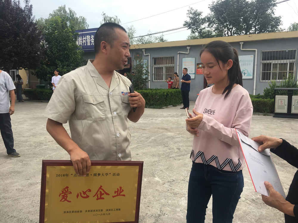 8.25日,金秋開(kāi)學(xué)之際,由淇濱區(qū)委統(tǒng)戰(zhàn)部、共親團(tuán)淇濱區(qū)委、淇濱區(qū)工商聯(lián)組織愛(ài)心企業(yè)舉行2018年度“點(diǎn)亮希望,圓夢(mèng)大學(xué)”助學(xué)金發(fā)放活動(dòng)。我公司銷售部代表張經(jīng)理參加了此次助學(xué)捐贈(zèng)活動(dòng)。